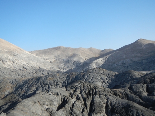 So, hier die Bilder von Mavroi Lakkoi. Das Gelände ist ohne Schnee schon heftig, mit Schnee ist das Harakiri. Das ist wie ein stark verspalteter Gletscher.