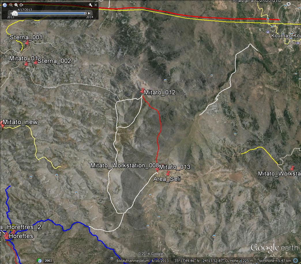 I spent some hours in front of google earth last evening. You are right, there are obvious signs in the terrain how to get from Kournas up to Steli, but I hardly can see any traces of a foot path leading up there. I think we will follow your suggestion to walk the dirt road from Asi Gonia, leave it at the specific turn and walk up to Horeftes mitato. If weather allows we will spend a night up there and head for Kallikratis the next morning.