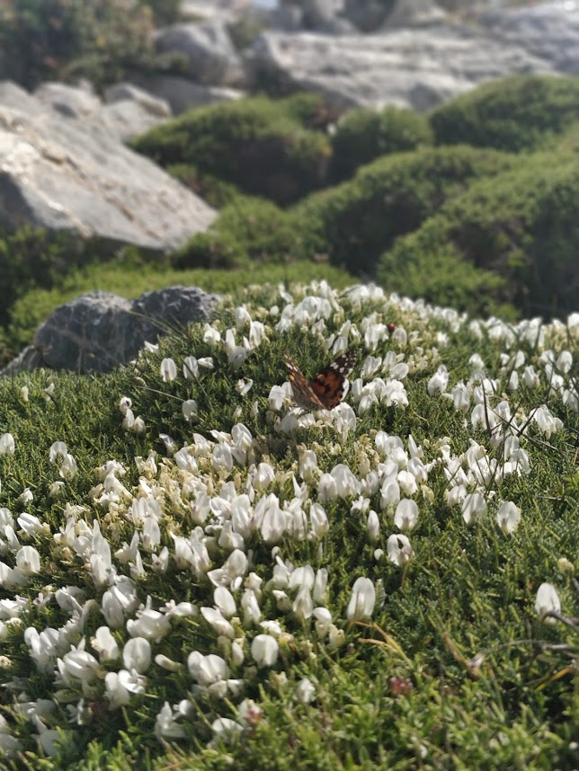Durch den regenreichen Winter gibt es dieses Jahr viele Schmetterlinge, wie der Distelfalter auf deinem Bild. Zum Teil kannst du hunderte Schmetterlinge auf einmal sehen. Leider gibt es durch den Regen auch mehr Mücken. Vor ein paar Tagen hatte jemand geschrieben, daß zwischen der Linoseli-Quelle und dem Sattel auch eine richtige Mücken-Plage gewesen ist.