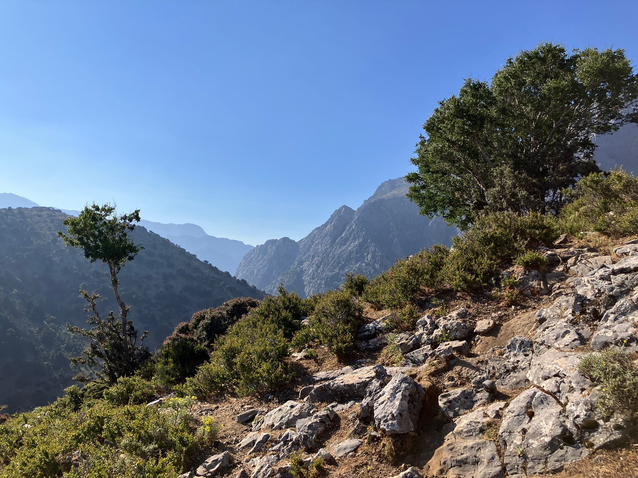 Die älteste kretische Zelkove steht in Omalos. Sie ist 700+ Jahre alt und hat einen Umfang von 4,3m. Man geht etwa 30 Minuten bis zu dem Zelkoven Wäldchen, von denen viele über 200 Jahre alt sind. Den Ort nennt man Koutsopétra.