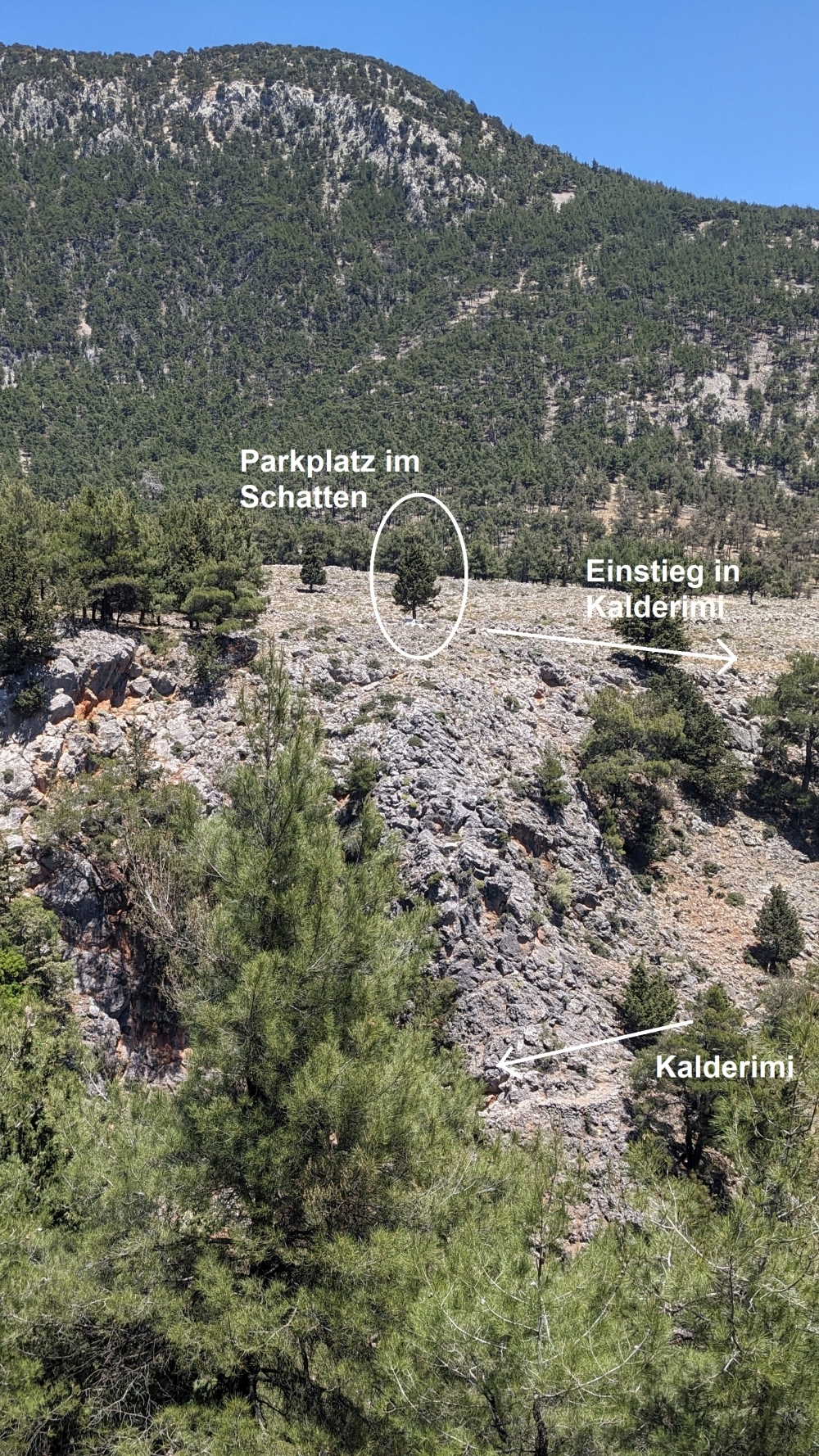 Uhrzeigersinn durchwandert. Neben der geänderten Laufrichtung bin ich nicht den Weg über Gonia gegangen, sondern die Aradenaschlucht abwärts bis zum übernächsten Ausstieg.