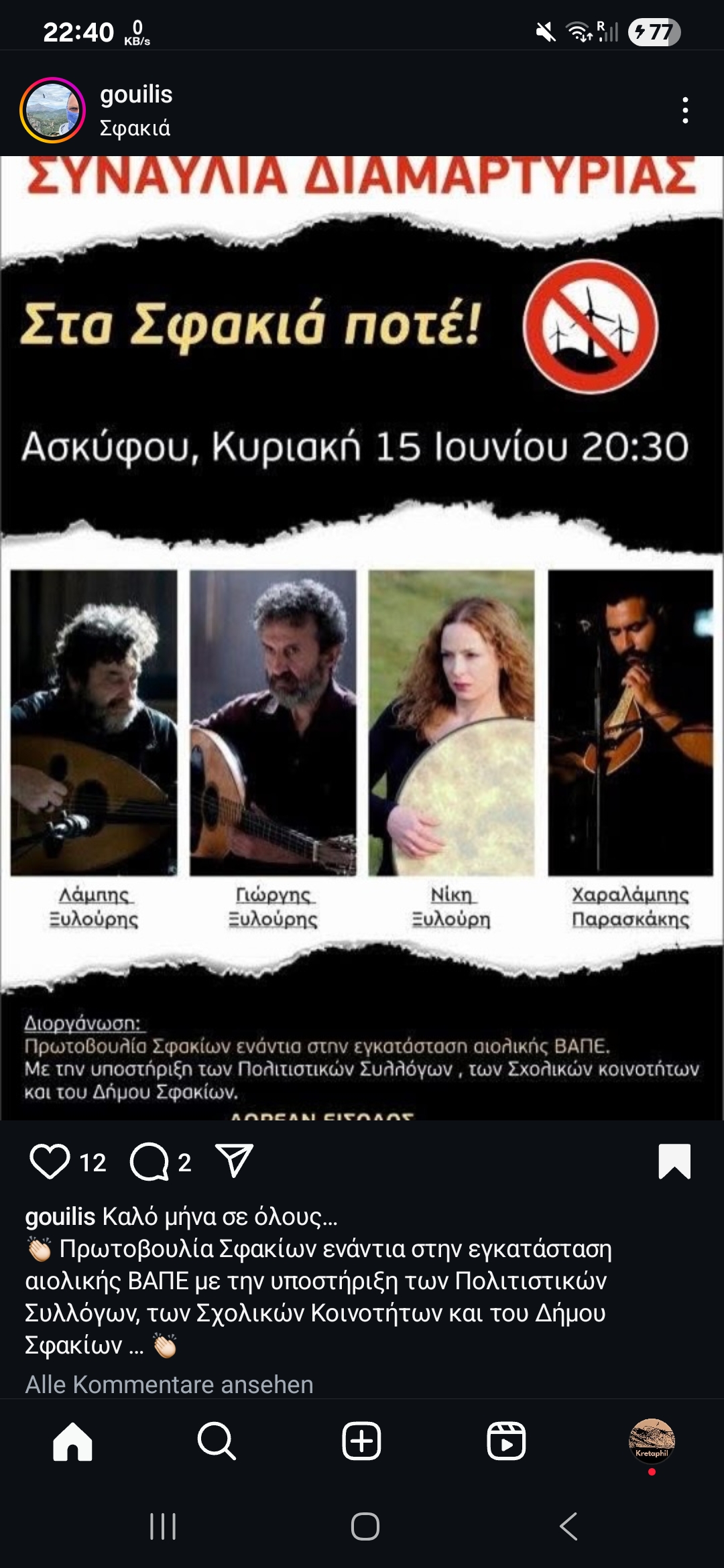 Am 16. März gab es in Ostkreta eine Protestveranstaltung: https://candiaalternativa.info/?p=46252