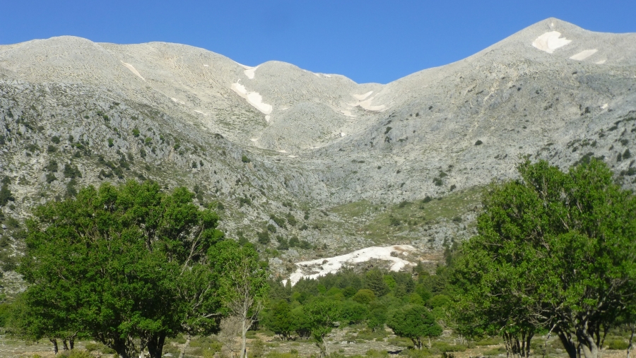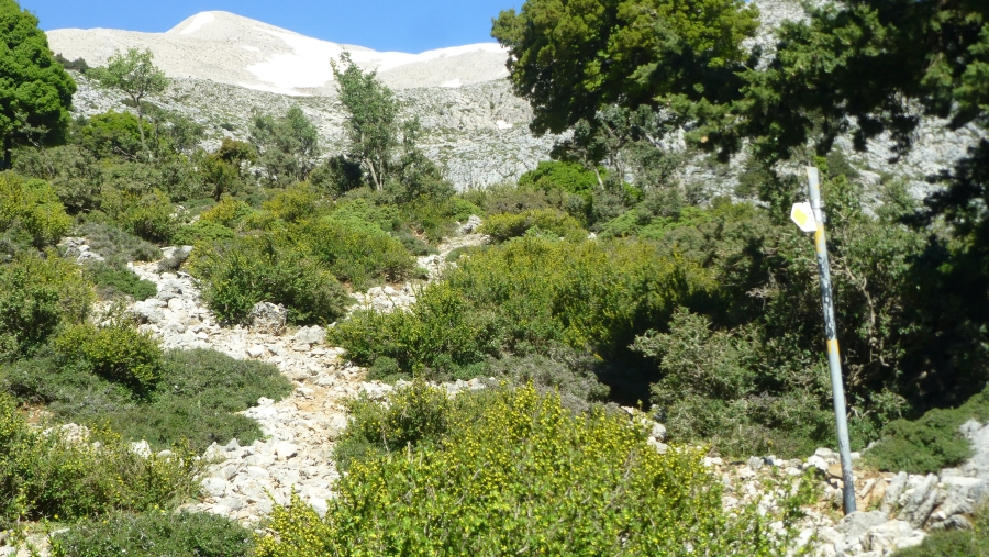 weder der (alte) E4 noch der sich anschließende Aufstieg auf den Pachnes sind ein Weg. Du folgst anfangs der alten E4 Zeichen, dann gelangst du ihn eine Art Kessel, von dem du dann rechterhand auf einen Grat steigst. Diesen einfach ganz nach oben gehen (der alte E4 verlässt den Grat bei ca. 1900 m nach rechts). Irgendwann gelangst du sozusagen aufs "Gipfelplateau" - da dann zum Kastro Gipfel rüberqueren.