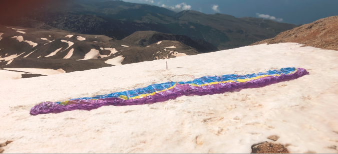 From a small snowfield on Thodori Korfi (2317m) to Nera Glyka, flying with a paraglider