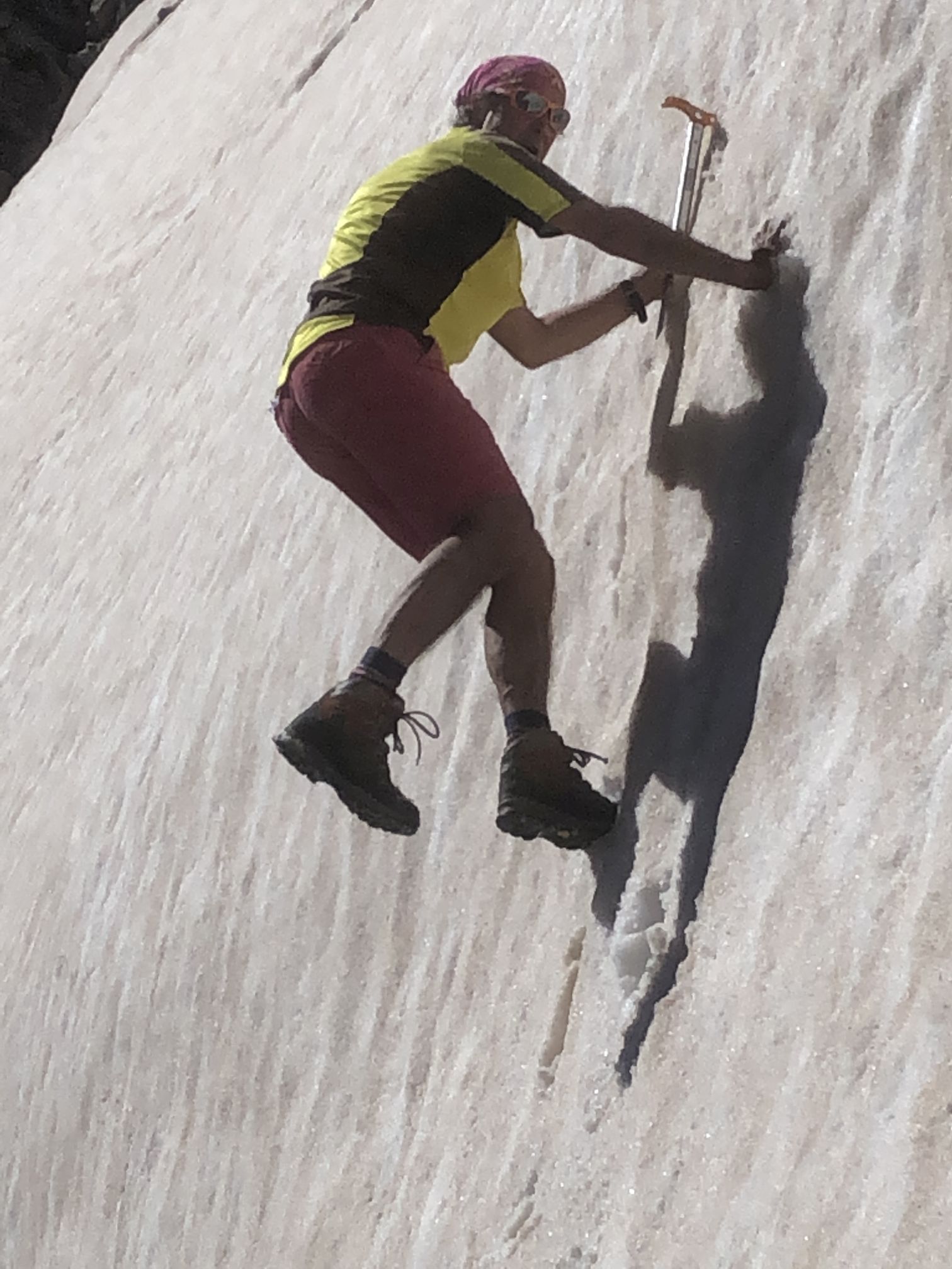 exercising in steep snow while waiting for the truck-transport down to Anopoli