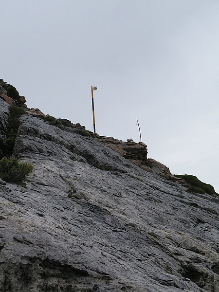 The marking of the path - that means placing the new poles, pouring concrete around and screwing the signs to the poles - was successful. We had explored the area on Friday afternoon - unfortunately, we faced a thunderstorm when we started our descent. During this trip, we placed some "provisional poles" (branchesof trees). Later in the evening, around 10 p.m., we met Manos from the EOS Chania as well as Leonidas (who was experienced in placing poles in the mountains as he had done this when the original poles were placed) and four co-workers in the Tavri refuge. We had pilafi, meat and salad (in huge quantities) as well as home-produced wine for dinner.