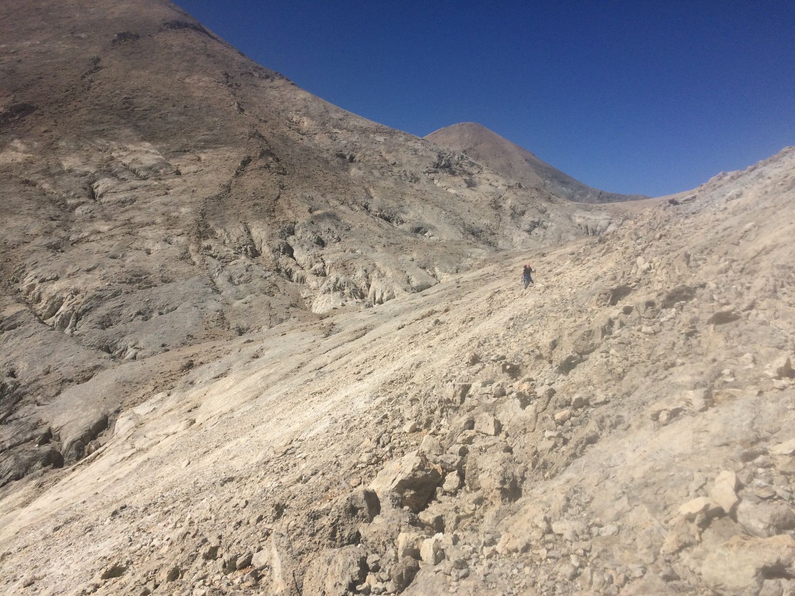 - soll doch diese wunderschöne, allerdings nicht wirklich triviale Variante versuchen. Wir haben keine einzige menschliche oder tierische Spur gefunden, Ziegen gab es erst ab etwa 1700 m ü M. Es ist jedenfalls mit Abstand das Abgelegenste, was ich je in den Levka Ori gemacht habe (durch die Pavlia Chalara z.B . führt ja immerhin ein gar nicht so schlechter Pfad). Wir hatten kein GPS, darum kann ich unsere Route nur so ungefähr aus dem Gedächtnis einzeichnen auf den Pics. Weiss jemand, ob es zu dieser unserer Variante schon Berichte gibt? (Sorry, aber ich bin erst gestern auf dieses Levka-Ori-Forum gestossen, Neuling... bei Interesse könnte ich das hier auch mal noch ins English übersetzen)
