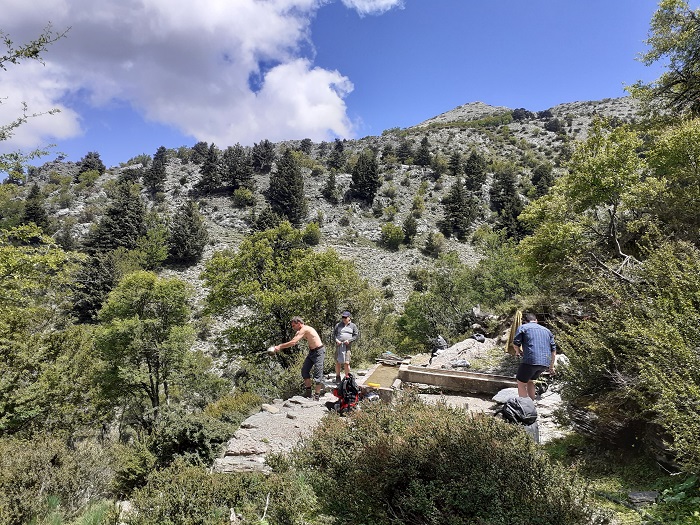 The track, passing Tromarissa and Pigadakia, is a really beautiful one, for me the best track, coming from the north, to achieve the higher regions of the Levka Ori because of the exciting nature und the safe water sources. We spent the night in neighborhood of the Mitato Papa Lakko, (I hope, the term is correctly), 1.400 m, beautiful scenery, protected place from the mountains around….